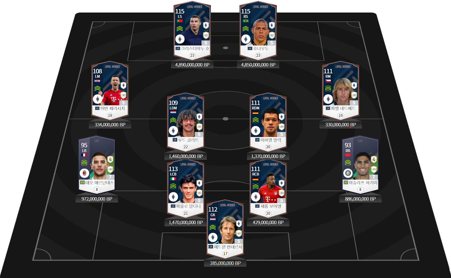 호나우두, 말디니, 굴리트, 발락, 말디니 같은 좀 비싼 선수들까지 다 은카를 썼을 때 나오는 170억 정도가 나옵니다.