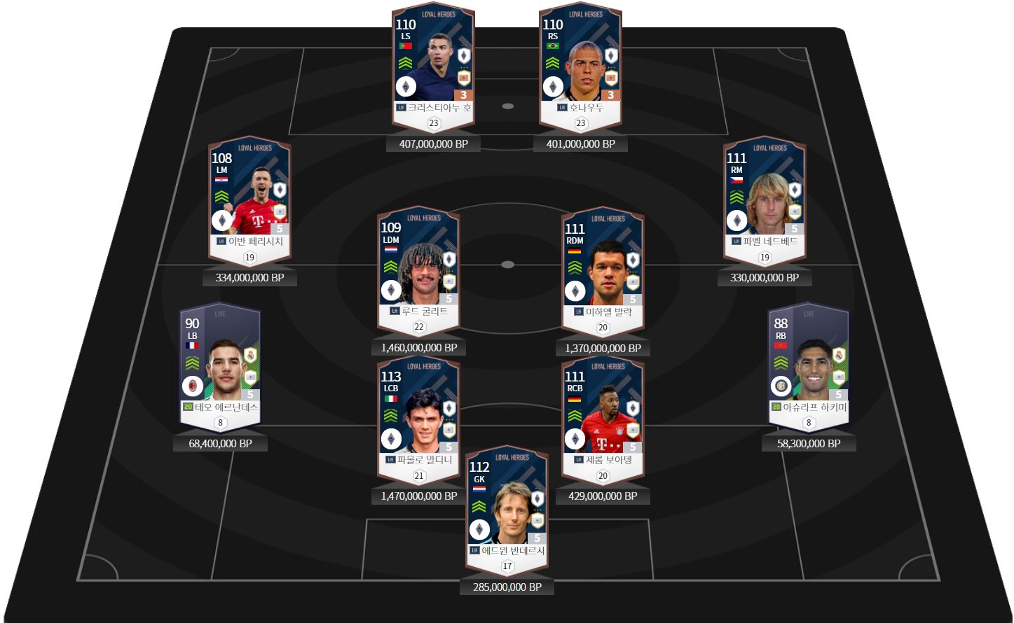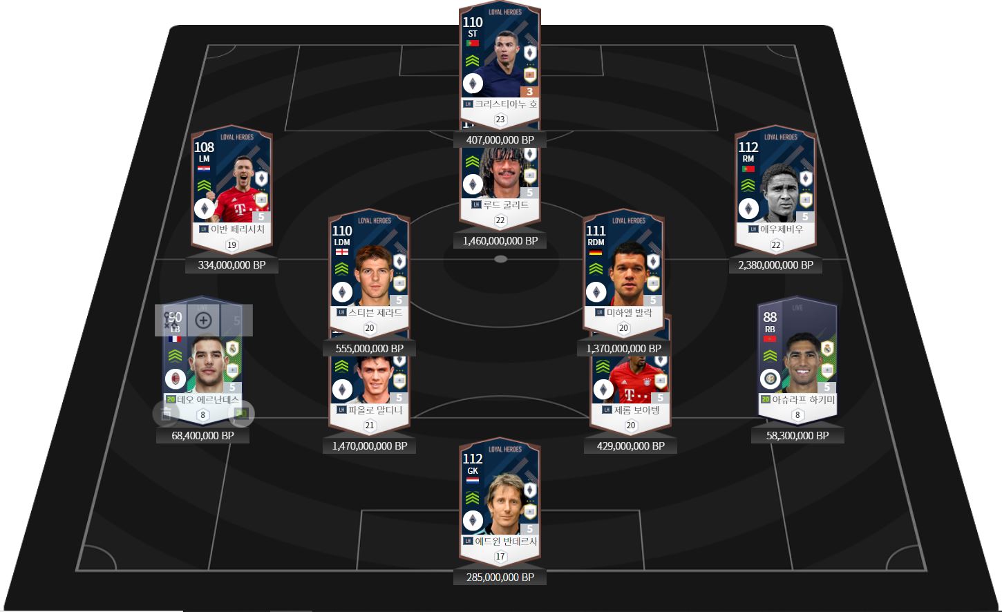 은카 가격대가 10억대인 굴리트, 발락, 말디니를 은카로 올려줍니다.