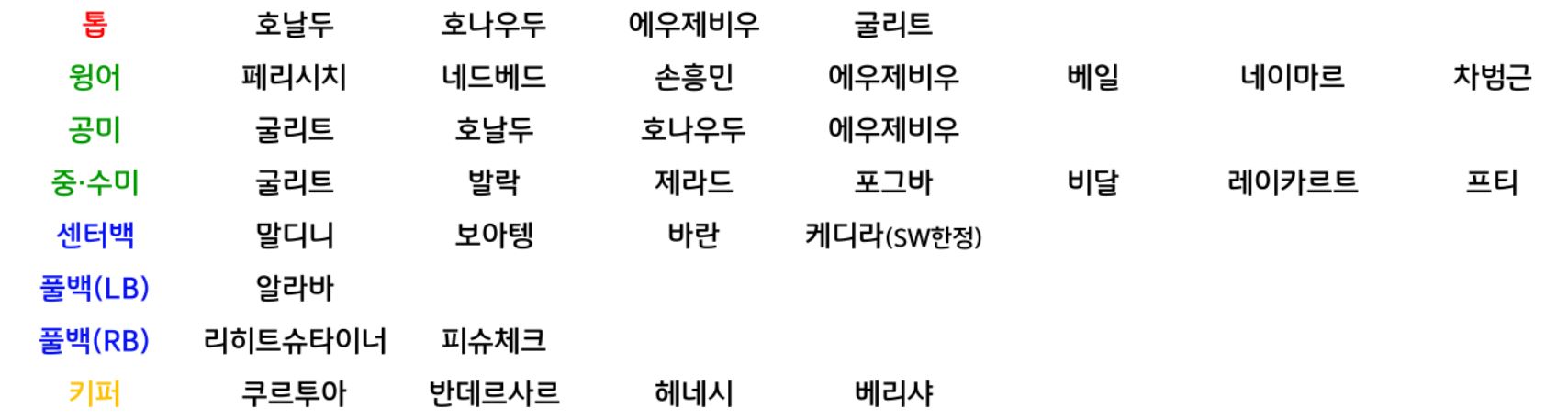 먼저 먼저 사용하기 좋은 선수들부터 알려드리겠습니다.