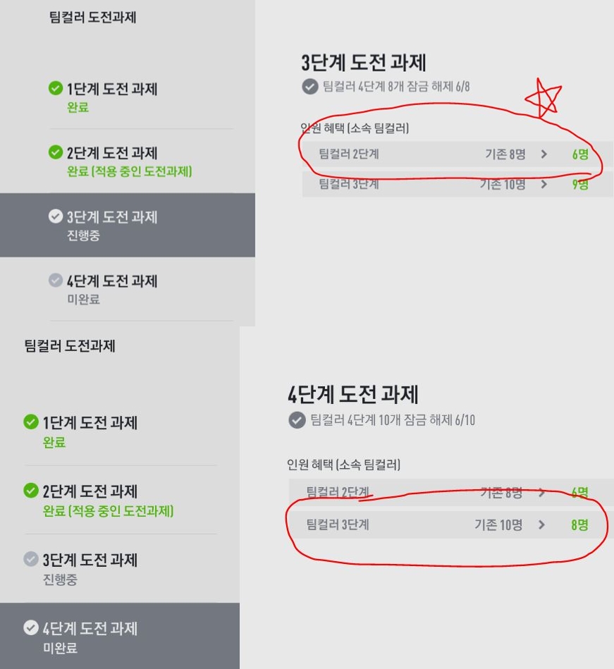 팀컬러 도전과제를 4단계까지 다 깨셨다면